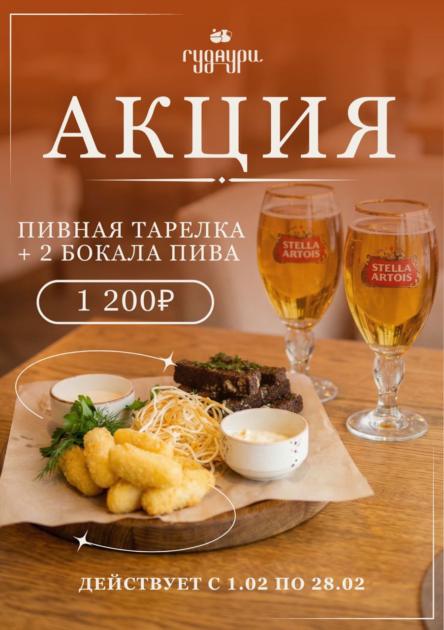 Каждую неделю — новые поводы заглянуть в «Гудаури»: живая музыка, тематические вечера, розыгрыши и подарки. Следите за новостями.Атмосфера